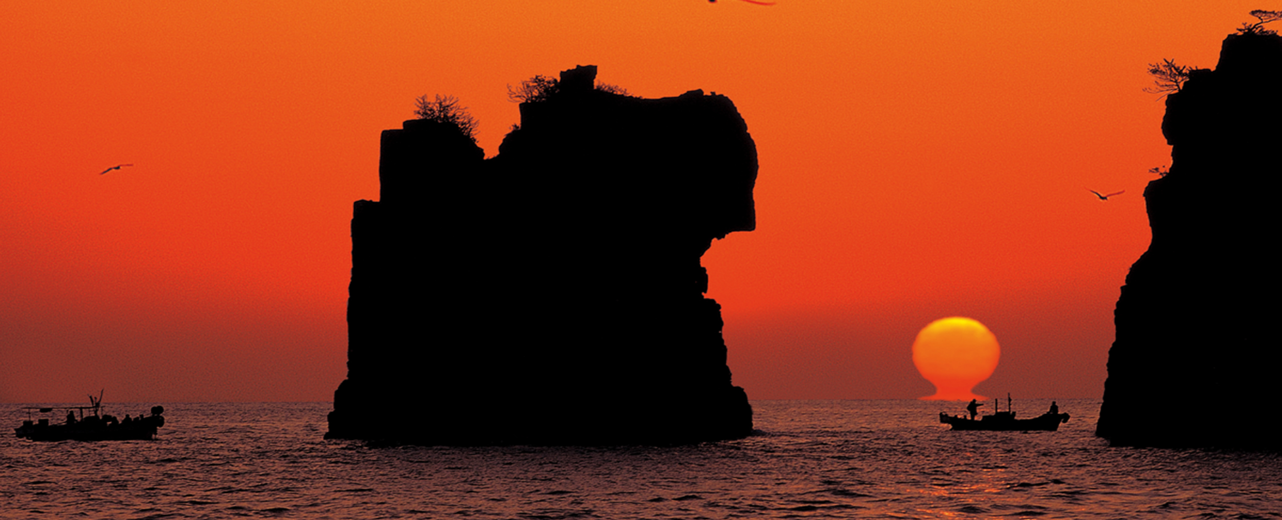 '해금강(海金剛)'은 강이 아니라, 그 모습이 금강산처럼 아름답다 하여 이름 붙여진 바다 위의 바위섬 군락입니다. 신랑신부바위, 거북바위 등 기이한 형상의 바위들과 배가 아슬아슬하게 통과하는 십자동굴(十字洞窟)의 신비로운 모습은 유람선 위에서만 온전히 감상할 수 있는 장관입니다. 진시황이 불로초를 구하기 위해 서복을 보냈다는 전설이 깃들어 있을 만큼 예로부터 그 비경을 인정받은 곳으로, 선장님의 구수한 해설을 들으며 둘러보는 재미가 쏠쏠합니다.