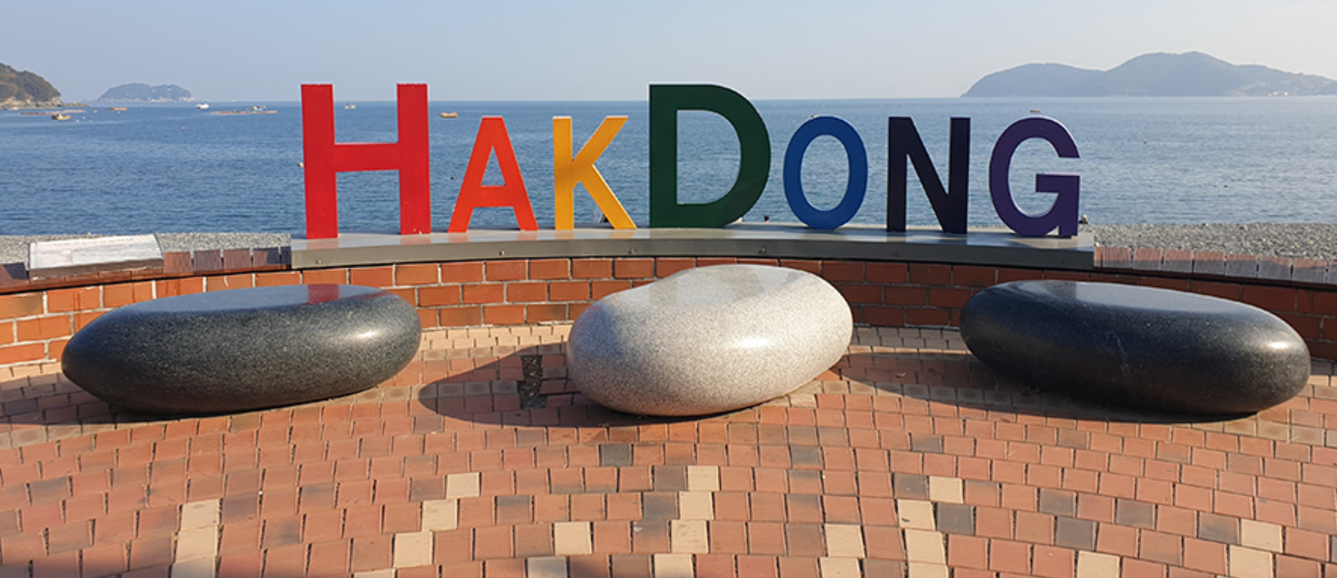 학동 몽돌해변은 그 규모부터 압도적입니다. 길이 약 1.2 km, 폭 50 m, 전체 면적 3만 ㎢에 달하며, 방문객 수 기준으로 국내 최대의 몽돌해변으로 꼽힙니다. 거제 남부 해안선의 중심에 위치하여 빼어난 경관을 자랑하며, 이곳의 몽돌은 거제의 다른 몽돌해변과 비교해 크기가 더 작고 유독 검은빛을 띠는 것이 특징입니다. 이 때문에 '흑진주'라는 이름이 붙었으며, 유난히 맑고 깨끗한 바닷물 덕분에 수면 아래에서 반짝이는 몽돌의 모습을 선명하게 관찰할 수 있습니다.