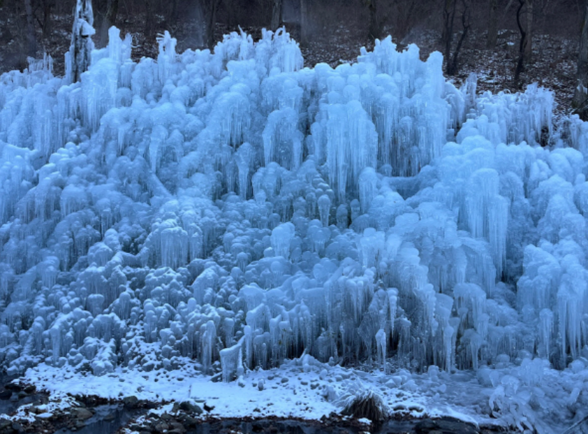 - 겨울의 얼음 왕국, 얼음동산: 겨울이 되면 휴양림은 대구의 대표적인 겨울 명소로 탈바꿈한다. 해발 약 500m 지점의 계곡을 따라 인공적으로 조성된 얼음동산은 거대한 빙벽과 얼음동굴, 얼음탑 등으로 구성되어 환상적인 풍경을 연출한다. 특히 야간에는 오색 LED 조명이 더해져 낮과는 또 다른 몽환적인 분위기를 자아내며, 입장료 없이 누구나 즐길 수 있는 특별한 경험을 제공한다. 다만, 산속의 겨울은 상상 이상으로 춥기 때문에 따뜻한 옷차림은 필수다.