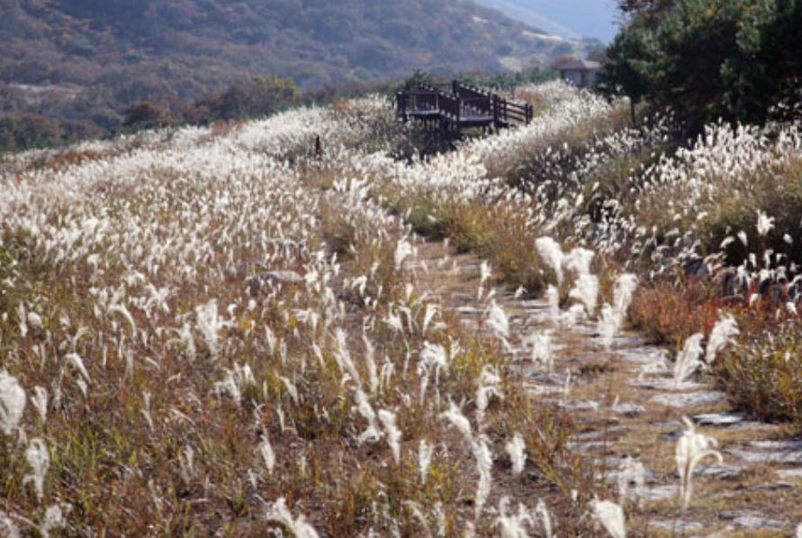m2)에 달하는 광활한 평원은 온통 은빛 억새꽃으로 뒤덮여, 햇살을 받을 때마다 거대한 은빛 바다가 출렁이는 듯한 장관을 연출한다.