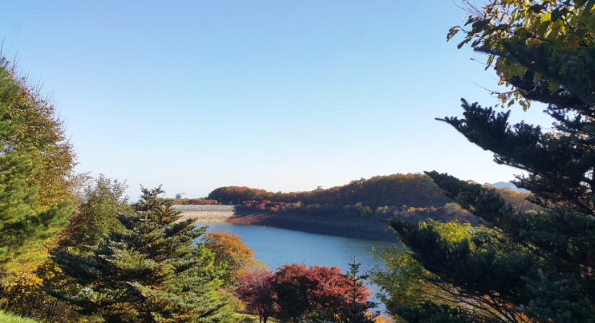 산 중턱, 해발 850m 지점에 다다르면 문득 시야가 트이며 고요한 호수가 나타난다. 바로 '하늘 아래 호수'라 불리는 적상호(赤裳湖)다. 이 신비로운 산정 호수는 자연적으로 생성된 것이 아니라, 무주 양수발전소의 상부 저수지로 건설된 인공 댐이다. 이는 적상산의 핵심 주제인 '자연과 기술의 공존'을 가장 극명하게 보여주는 상징적 공간이다. 산업적 목적으로 탄생했지만, 이제는 하늘과 단풍을 비추는 거울이 되어 사색적인 풍경을 자아낸다. 잘 정비된 호수 주변을 걷다 보면, 거대한 댐 구조물과 수려한 산세가 어우러져 만들어내는 독특하고 사색적인 아름다움에 빠져들게 된다.
