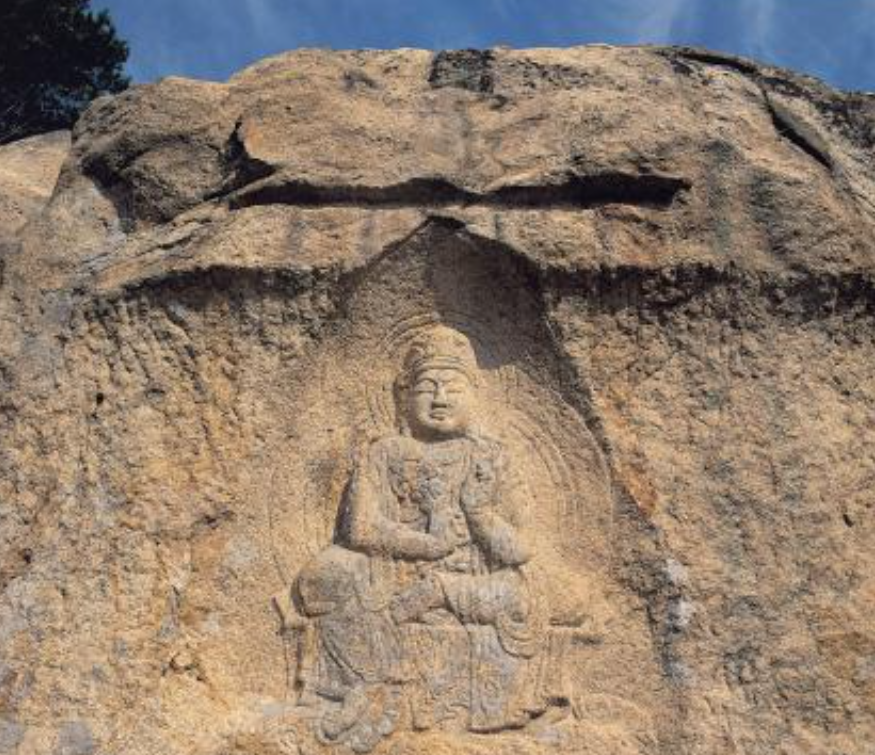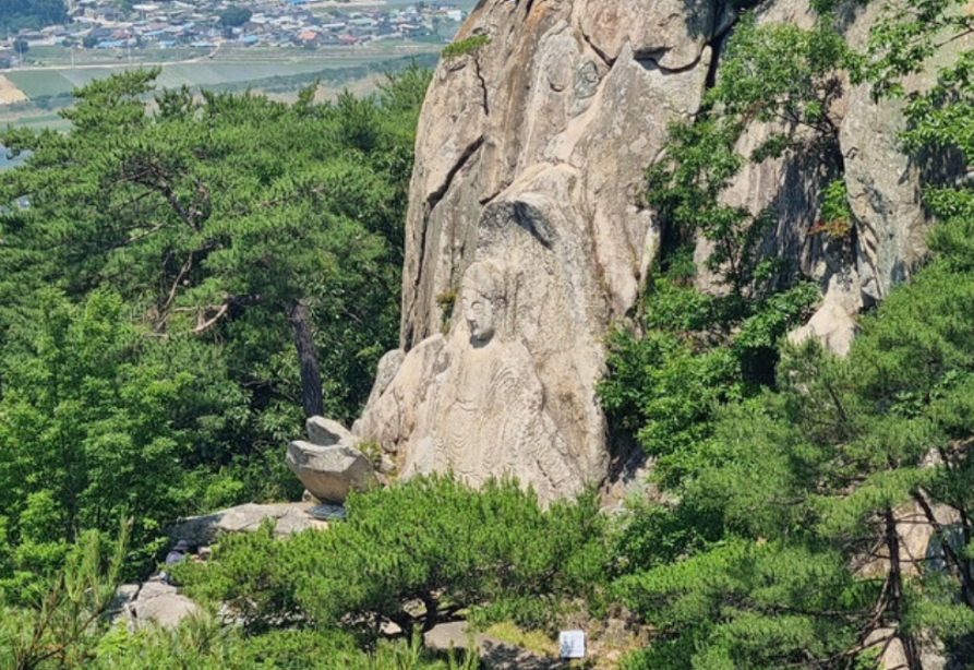 2. 경주 남산 신선암 마애보살반가상 (보물 제199호): 칠불암에서 가파른 바윗길을 조금 더 오르면, 신선이 노닐었다는 이름처럼 비현실적인 아름다움을 간직한 보살상을 만나게 됩니다. 절벽 끝에 구름을 타고 앉아 깊은 명상에 잠긴 듯한 이 반가사유상은 우아함과 평온함의 극치를 보여줍니다. 특히 동해에서 떠오르는 아침 햇살을 받을 때 그 신비로운 모습이 절정에 달하며, 이곳에서 내려다보는 동남산의 풍경 또한 장관입니다.