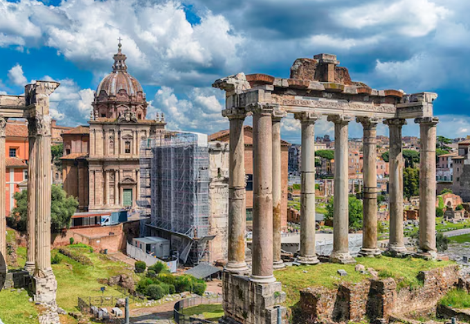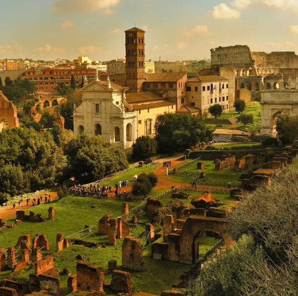 - 포로 로마노(Foro Romano): 고대 로마의 정치, 종교, 상업의 중심지였던 곳으로, 현재는 신전, 바실리카, 개선문 등의 유적이 광활하게 펼쳐져 있다. 율리우스 카이사르 신전, 티투스 개선문, 원로원 의사당(쿠리아) 등 역사의 현장을 직접 걸으며 로마 공화정과 제국의 심장부를 느낄 수 있다.