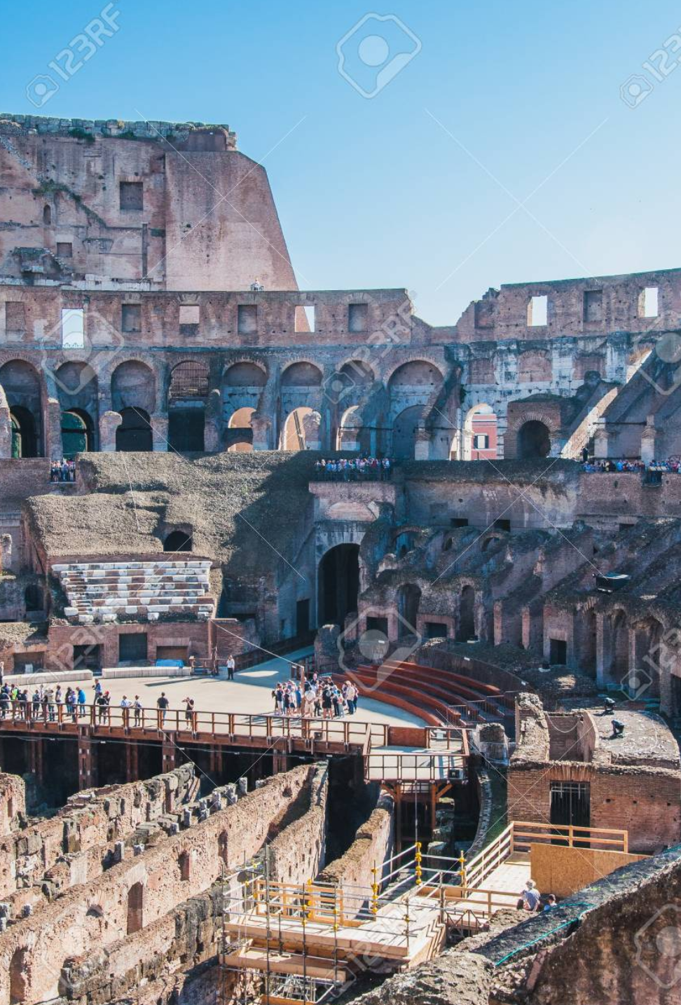 무대의 중심인 아레나는 라틴어로 모래를 뜻하는 '하레나(harena)'에서 유래했으며, 이름 그대로 피를 흡수하기 위해 모래가 덮인 나무 바닥이었다. 그 아래에는 '히포게움(Hypogeum)'이라 불리는 2층 규모의 거대한 지하 시설이 미로처럼 얽혀 있었다. 이곳은 검투사와 맹수들이 경기를 기다리는 대기 공간이자, 복잡한 승강 장치와 함정을 통해 이들을 아레나로 극적으로 등장시키는 무대 장치의 핵심이었다.