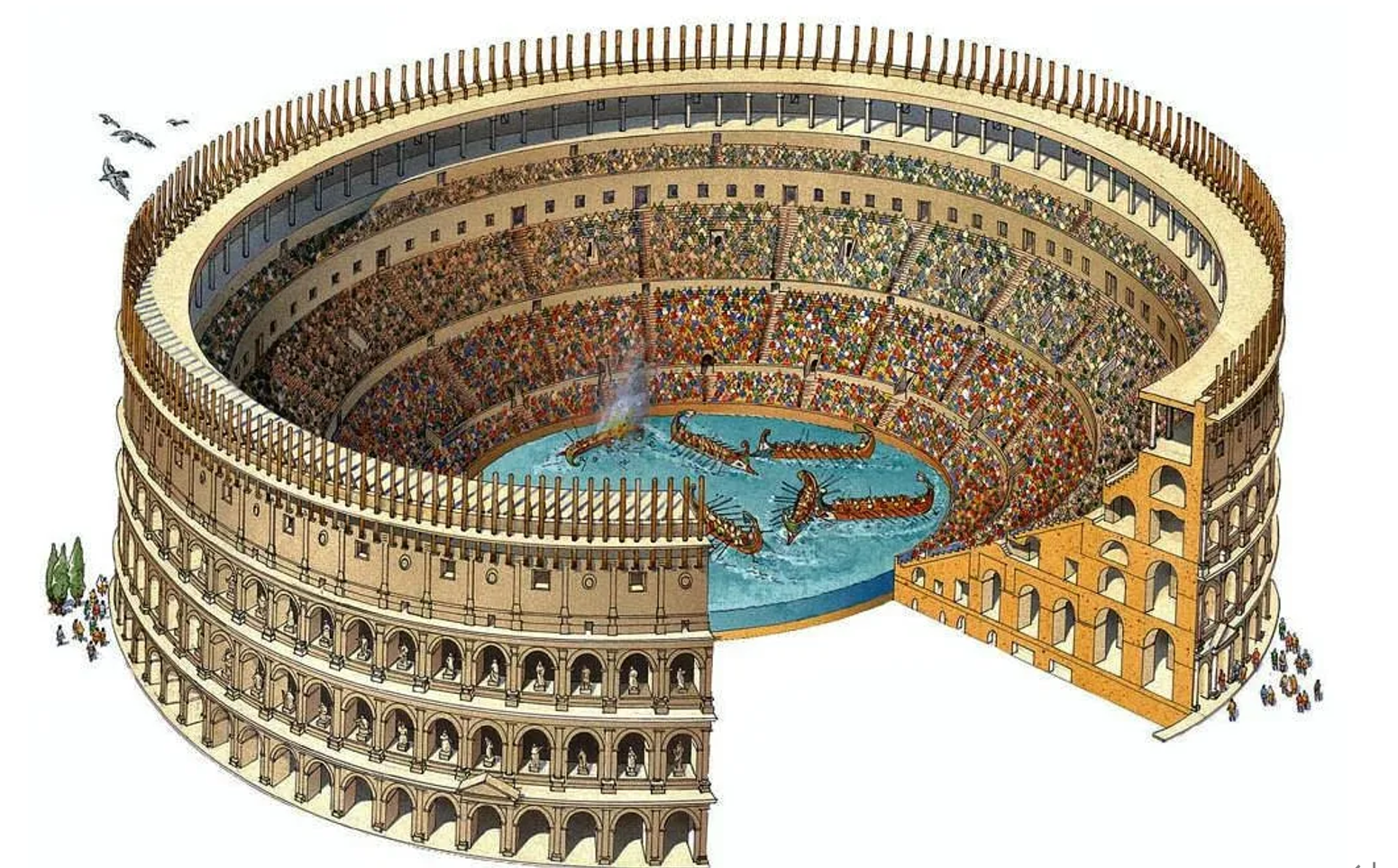 콜로세움의 관중석 '카베아(Cavea)'는 당시 로마 사회의 축소판이었다. 좌석은 사회 계급에 따라 엄격하게 구분되었다. 아레나와 가장 가까운 최하단 좌석은 원로원 의원들의 차지였고, 그 위로는 기사 계급, 일반 로마 시민 순으로 자리가 배정되었다. 가장 높은 꼭대기 층의 목재 좌석은 가난한 자, 노예, 그리고 여성들의 몫이었다. 이처럼 콜로세움은 그 구조 자체로 로마의 철저한 사회 계급 질서를 물리적으로 구현하고 있었다.
