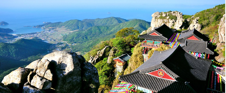 금산 & 보리암 | 38경을 품은 성스러운 산 | 두모 코스 등반으로 산의 서사 체험하기 | 입장료 1,000원 / 주차료 약 5,000원 | 금산산장에서 절경과 함께 컵라면 즐기기 |