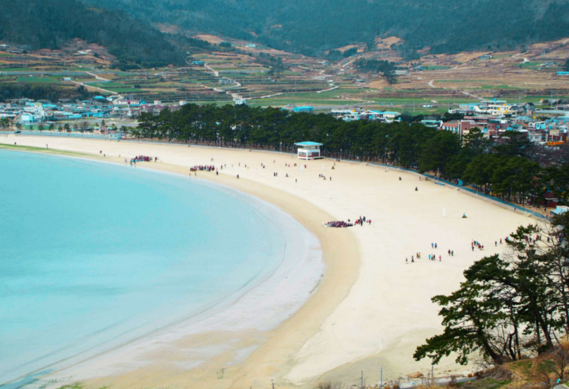 상주 은모래비치 | 부채꼴 모양의 은빛 모래 해변 | 맨발로 고운 모래를 느끼며 송림 산책하기 | 입장 및 주차 무료 | 해수욕 후 인근 식당에서 신선한 해산물 맛보기 |
