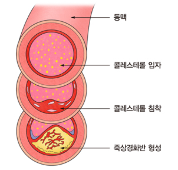 - 유병률 및 영향: 30세 이상 성인의 26.1%가 고콜레스테롤혈증을 앓고 있을 정도로 흔합니다. 이는 혈관 벽에 콜레스테롤이 쌓여 혈관이 좁아지고 딱딱해지는 동맥경화증을 유발하는 핵심 원인으로, 심근경색과 뇌졸중의 근본적인 배경이 됩니다.