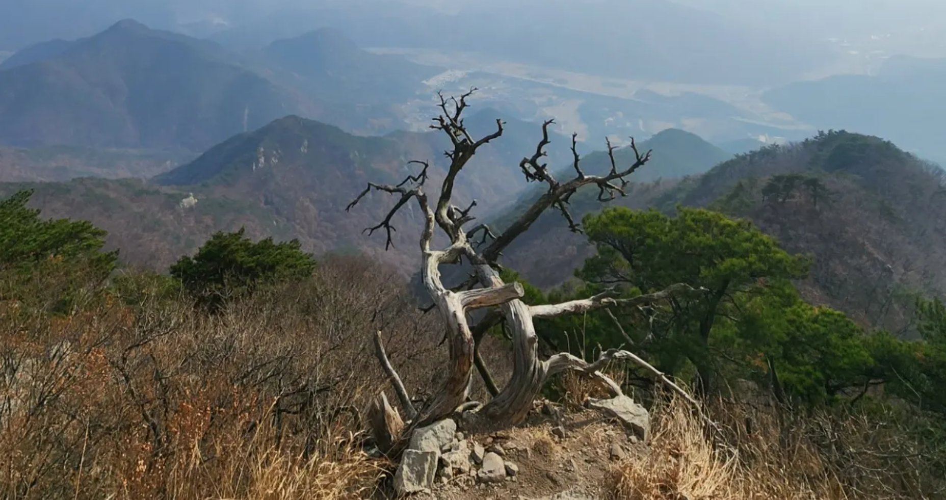 - 정상 고사목 (정상의 죽은 나무): 구병리 코스의 유일무이한 포토 스폿이다. 정상석 바로 앞에 기묘한 형태로 서 있는 이 고사목은 구병산 인증 사진의 상징과도 같다. 특히 오르는 길에 이렇다 할 조망이 없는 구병리 코스 등산객들에게는 정상에서의 보상과도 같은 존재여서, 주말에는 사진을 찍기 위해 줄을 서기도 한다.
