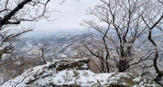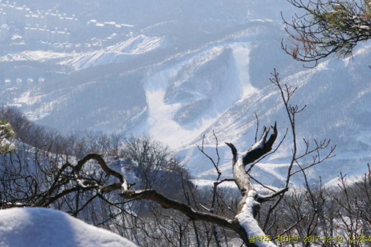 겨울은 천마산이 가장 화려하게 빛나는 계절이다. 이 산은 숨 막히는 설경으로 유명하며 , 나뭇가지에 서리가 얼어붙어 피어나는 상고대는 '겨울 왕국'과 같은 환상적인 풍경을 연출한다. 특히 호평동 코스는 그늘지고 서늘한 조건 덕분에 상고대를 감상하기에 가장 좋은 장소로 알려져 있다. 겨울 산행 시에는 방한 의류와 아이젠 착용, 그리고 짧아진 해를 고려한 안전 계획이 반드시 필요하다.