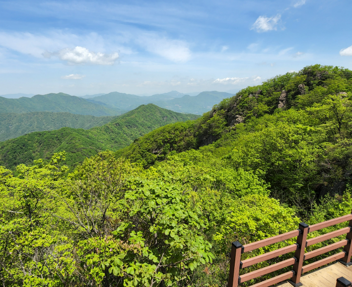 - 초반의 명소: 등산로는 계단으로 시작해 곧이어 현수교와 구름다리를 만난다. 이 다리들은 초반부터 아름다운 사진 촬영 기회를 제공하며, 동화 같은 숲의 분위기를 자아낸다.