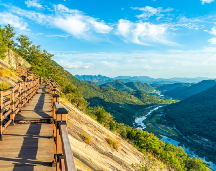 강천산이 고전적인 아름다움의 정수라면, 용궐산 하늘길은 현대적인 스릴과 장엄한 경관이 결합된 순창의 새로운 아이콘이다. '하늘길'이라는 이름 그대로, 이곳은 거대한 바위 절벽에 용이 승천하듯 아슬아슬하게 조성된 1,096m 길이의 데크길이다.
