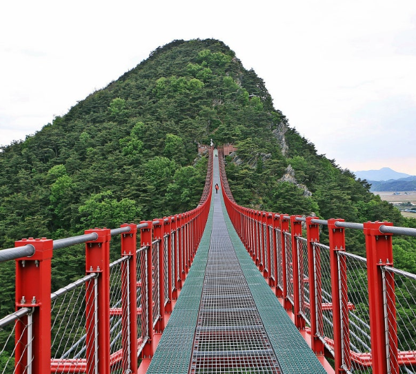 길이 270m, 최고 높이 90m에 달하는 이 거대한 현수교는 개장 당시 국내에서 가장 긴 무주탑(다리 기둥이 없는) 산악 현수교로 기록되었다. 주변의 푸른 산세와 극적인 대비를 이루는 강렬한 붉은색은 마치 순창 고추장을 연상시키며, 멀리서도 한눈에 들어오는 압도적인 존재감을 뽐낸다.