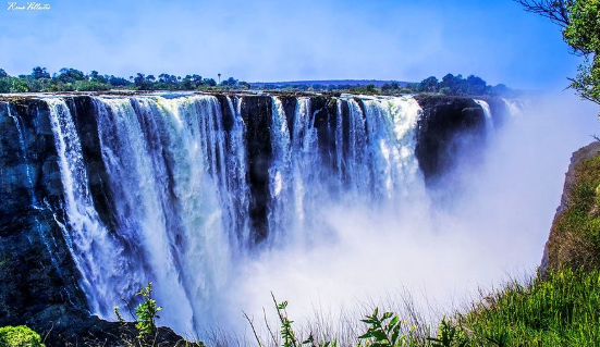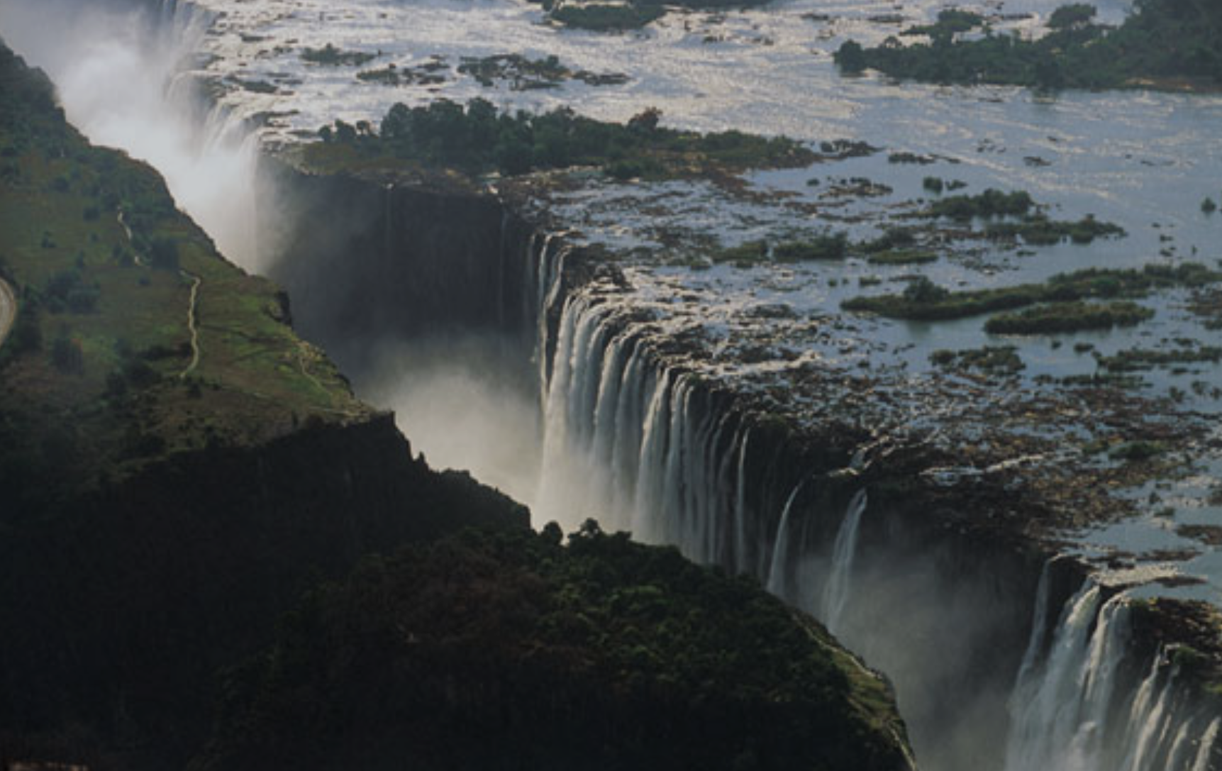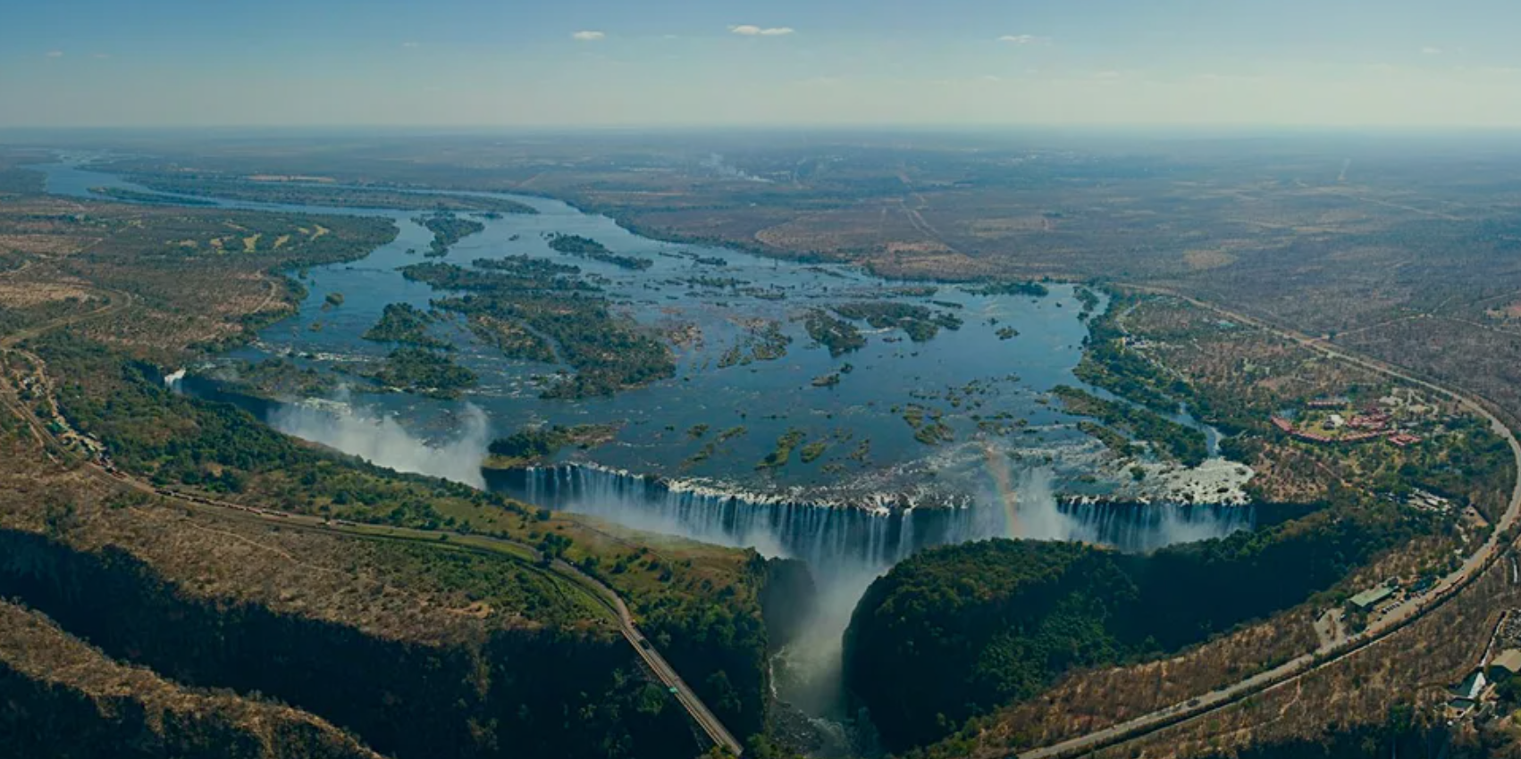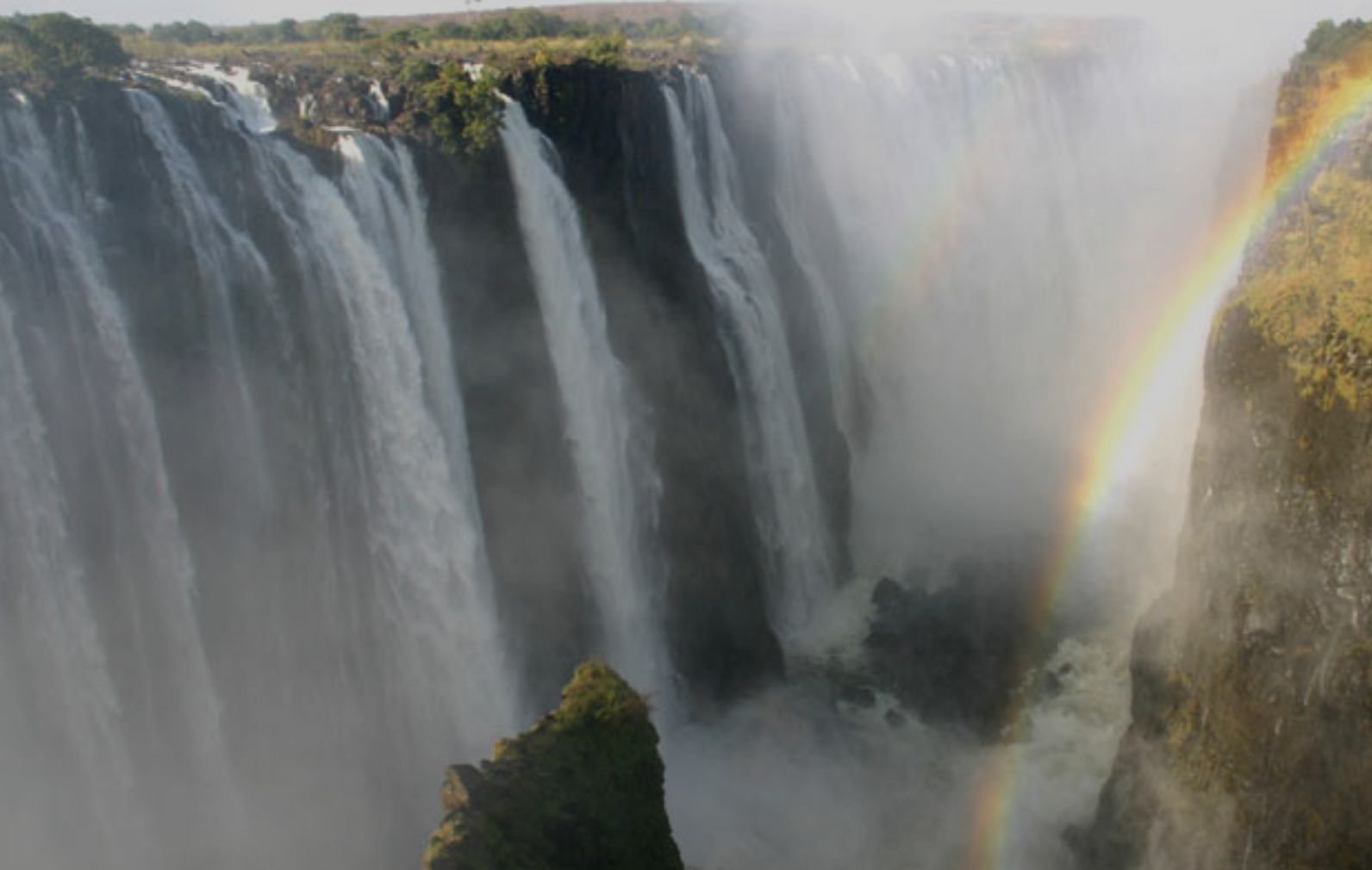 빅토리아 폭포는 남미의 이구아수 폭포, 북미의 나이아가라 폭포와 더불어 세계 3대 폭포 중 하나로 손꼽히는 장엄한 자연유산입니다. 짐바브웨와 잠비아 국경에 걸쳐 있으며, 너비 약 1,700m에서 1,708m, 높이 약 80m에서 108m에 달하는 압도적인 규모를 자랑합니다. 1855년 영국 탐험가 데이비드 리빙스턴이 발견하여 당시 영국 여왕의 이름을 따 '빅토리아 폭포'로 명명되었으나 , 현지 은데빌레족은 이 폭포를 '모시 오아 툰야(Mosi-oa-Tunya)'라 부릅니다. 이 이름은 '천둥처럼 울리는 물안개' 또는 '천둥치는 물보라'라는 뜻으로 , 폭포의 굉음과 우기(3~5월)에 150m 이상 치솟는 물안개 기둥을 그대로 묘사합니다. 유네스코 세계유산으로 등재되어 그 가치를 인정받고 있습니다.