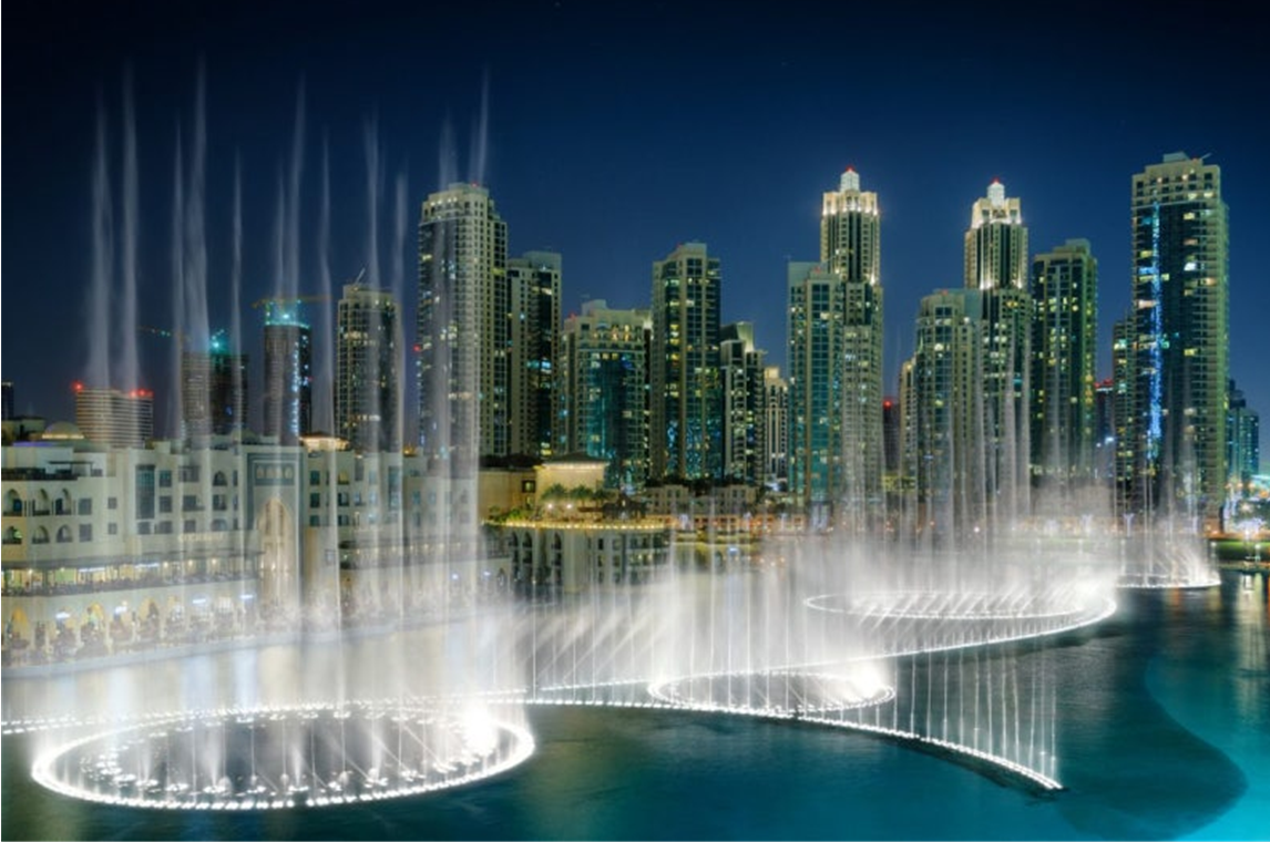 두바이 분수쇼: 화려한 물줄기와 음악, 조명의 조화