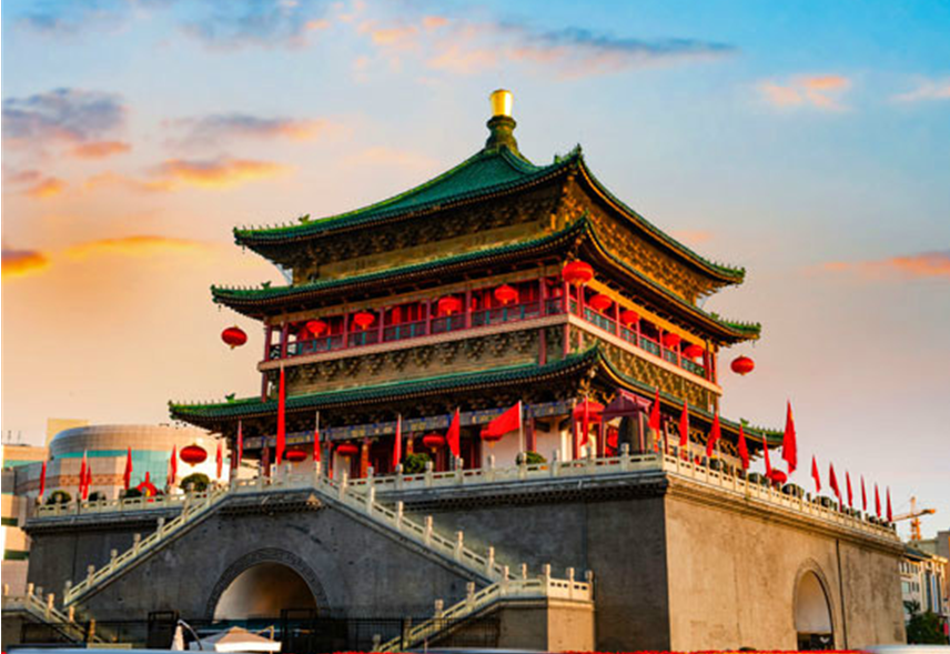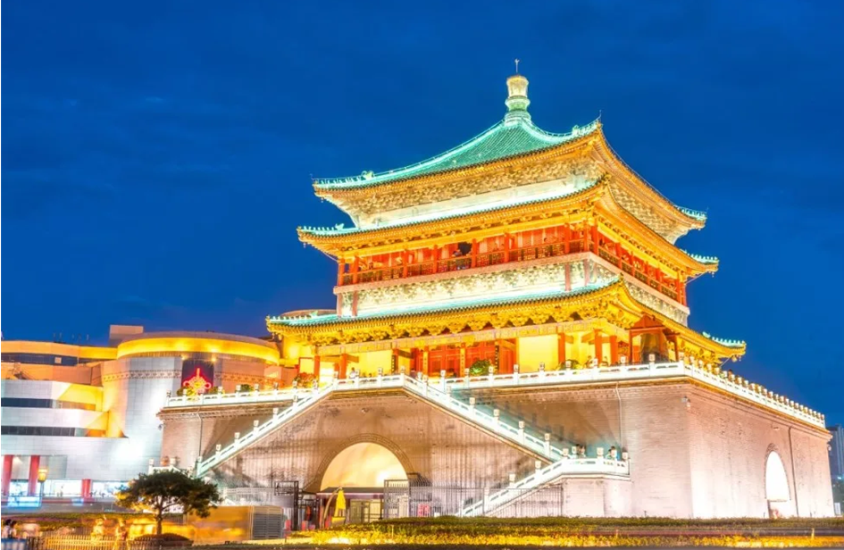 시안 성벽 안에 위치한, 못을 전혀 사용하지 않고 지어진 목조 건축물로 시안의 상징적인 랜드마크입니다. 밤에는 화려한 조명으로 아름다운 야경을 선사하며, 주변에 맛집과 쇼핑몰이 연결된 지하 광장이 있어 관광객들에게 인기가 많습니다.