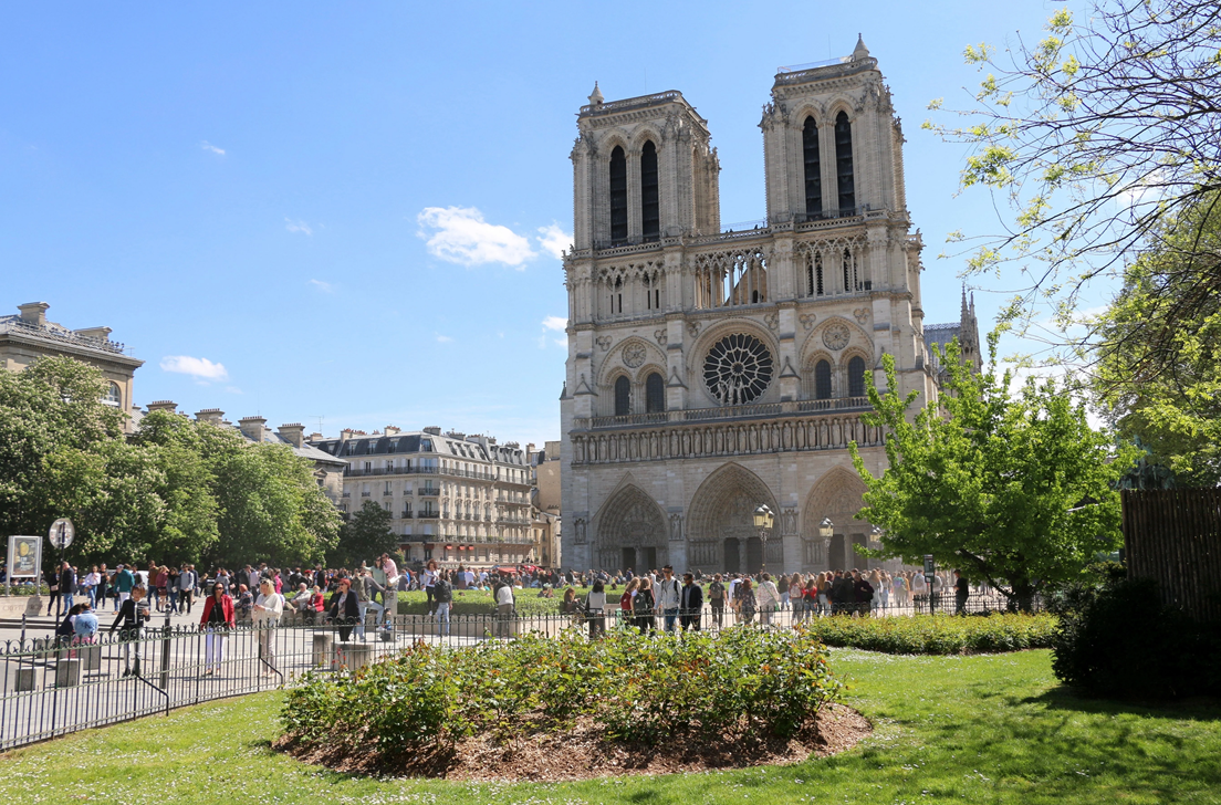 "파르비스 드 노트르담"(앞마당)의 지속적인 접근성 은 대성당의 외부를 감상하기 위한 중요한 공공 공간이자 최적의 장소입니다. 이곳에서 방문객들은 두 개의 종탑, 세 개의 웅장한 입구, 중앙의 장미창, 그리고 왕들의 갤러리 등 상징적인 서쪽 파사드를 감상할 수 있습니다. 앞마당 자체도 조경 및 파사드 개선 작업을 거쳐 2027년에 완료될 예정이며, 이는 주변 지역의 지속적인 진화를 의미합니다.