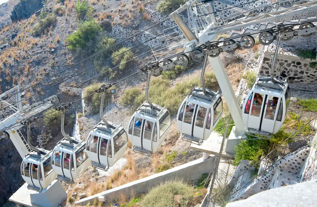 산토리니 케이블카 (Santorini Cable Car): 시내보다 낮은 지대에 위치한 산토리니 구 항구로 편안하게 내려갈 수 있는 수단입니다. 크루즈나 화산섬 투어 페리를 이용하기 위해 필수적이며, 케이블카를 타는 동안 푸른 바다를 조망할 수 있습니다. 구 항구까지는 케이블카 외에 당나귀나 도보(600개 계단)로도 이동 가능합니다.