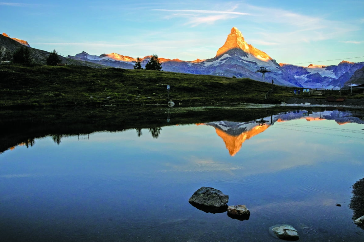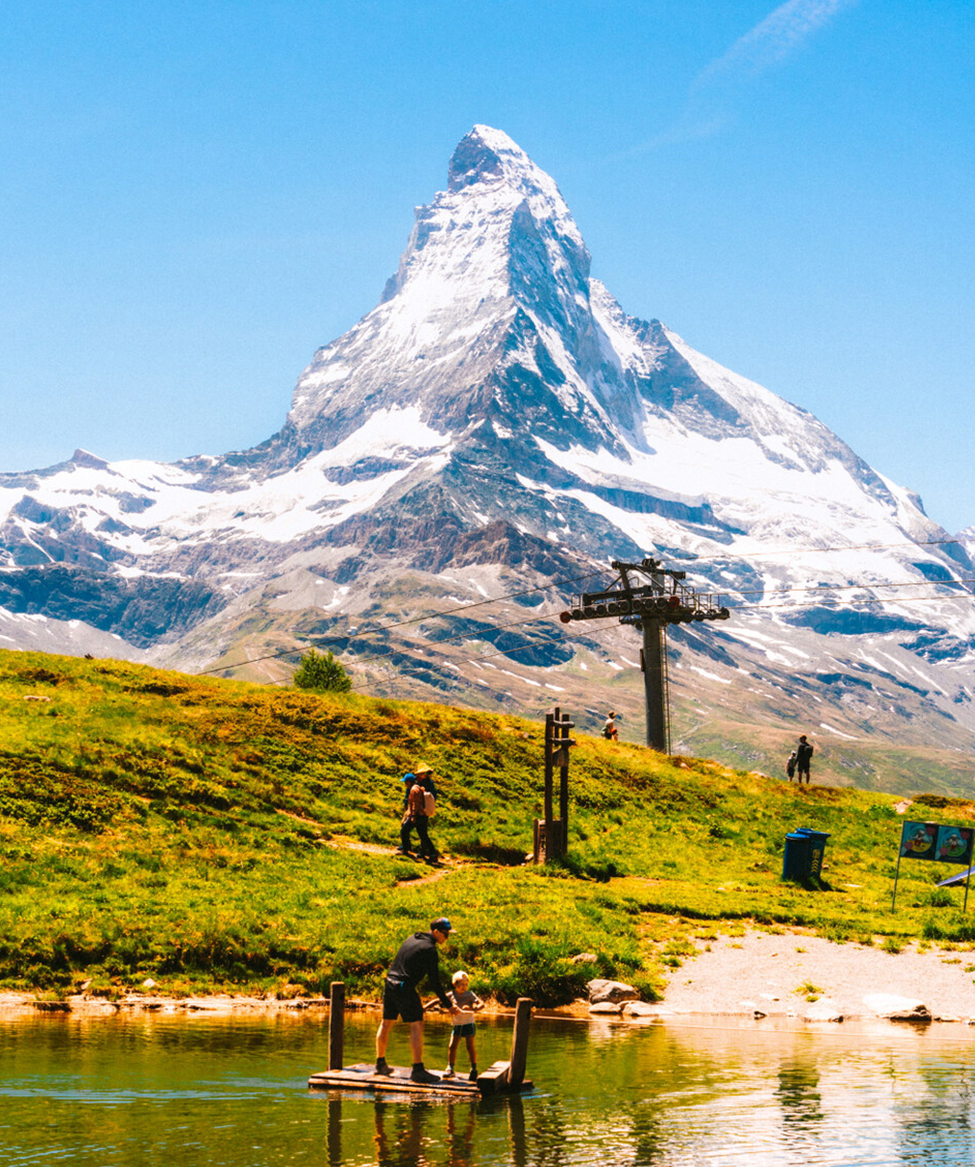 수네가(Sunnegga) 5대 호수 하이킹 코스는 체르마트의 산속을 거니는 웅장한 트레일로, 슈텔리제(Stellisee), 그린드이제(Grindjisee), 그륀제(Grünsee), 모스이제(Moosjisee), 라이제(Leisee) 다섯 개의 아름다운 호수를 연결합니다. 이 코스의 백미는 세 개의 호수에서 마터호른이 수면 위로 반사되는 진기한 풍경을 만날 수 있다는 점입니다.