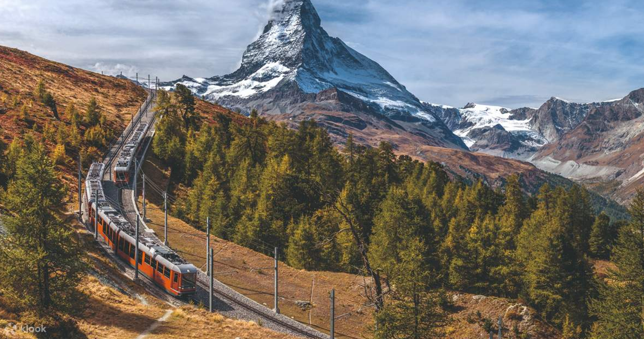 체르마트에서 고르너그라트까지는 유럽에서 가장 높은 개방형 톱니바퀴 열차인 고르너그라트 철도(Gornergrat Bahn)를 이용합니다. 이 열차는 체르마트 역에서 24분 간격으로 출발하며, 정상까지 편도 약 35분에서 40분이 소요됩니다. 열차에 탑승할 때는 오른쪽 창가 좌석에 앉는 것이 좋습니다. 체르마트 마을과 마터호른의 멋진 풍경이 열차 창문 너머로 한눈에 들어와 잊지 못할 추억을 선사하기 때문입니다.