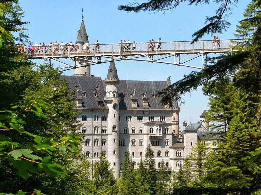 노이슈반슈타인 성을 가장 완벽하게 담아내는 장소는 바로 성 뒤편의 가파른 협곡 위에 놓인 마리엔 다리입니다. 이 다리는 성의 전체 모습을 한눈에 담을 수 있는 유일하고 상징적인 전망대 역할을 합니다.