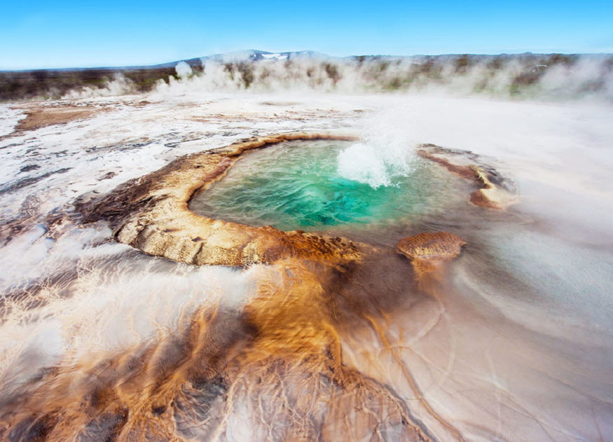 다음으로, '불의 땅' 아이슬란드의 정체성을 대변하는 게이시르 지열 지대가 자리하고 있습니다. 약 130개의 활화산이 존재하는 아이슬란드의 화산 활동은 이 지역에 수많은 간헐천과 뜨거운 진흙 웅덩이를 형성했습니다. 그중에서도 몇 분마다 뜨거운 물기둥을 공중으로 뿜어내는 스트로쿠르 간헐천은 이곳의 압도적인 하이라이트입니다. 자연의 원초적인 힘을 목격하며 이국적인 풍경 속에서 경외감을 느낄 수 있습니다.