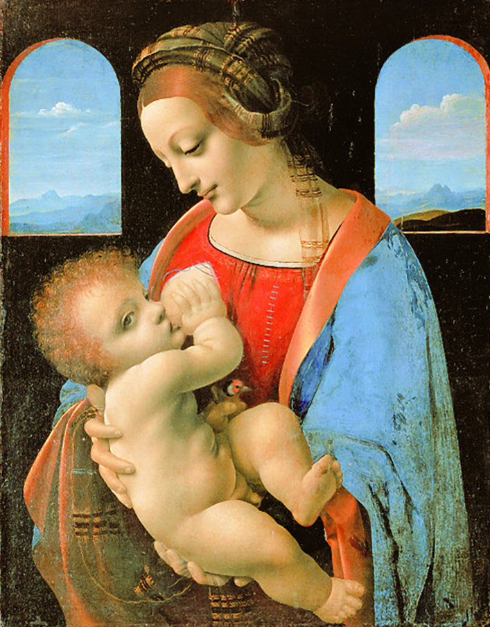 방대한 소장품 중에서도 반드시 주목해야 할 작품은 레오나르도 다빈치의 '마돈나 리타'입니다. 이 작품 속 아기 예수가 한 손에 쥐고 있는 황금방울새는 성서에서 그리스도의 고난을 상징하며, 아들의 운명을 예감하는 어머니 마리아의 슬픈 표정은 인간적인 비애를 담고 있습니다. 마리아의 푸른 겉옷은 하나님에 대한 충성을, 붉은 속옷은 십자가의 고통과 피를 상징하며 깊은 종교적 의미를 드러냅니다. 이 작품이 갖는 예술사적 의의는 초기 성서화에서 위엄 있게 묘사되던 아기 예수가 옷을 벗고 젖을 빠는 지극히 인간적이고 천진난만한 모습으로 그려졌다는 점입니다. 이는 르네상스 시대의 '성육신'의 본질과 '휴머니즘'이라는 새로운 문화적 조류를 반영한 파격적인 시도였습니다. 일부에서는 다빈치의 스케치를 제자들이 완성한 것으로 추정하지만, 그의 독창적인 미학이 온전히 담겨 있다는 점은 부인할 수 없습니다.