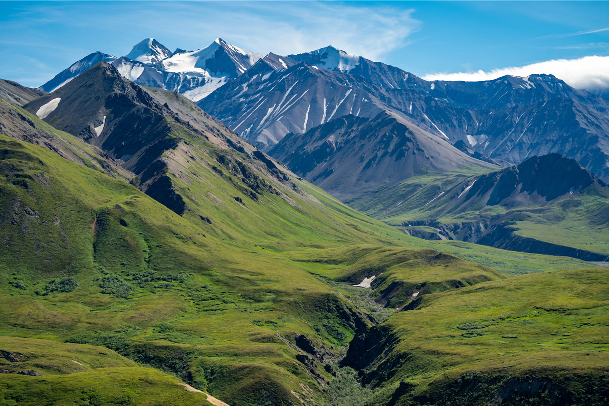 알래스카 중남부에 위치한 데날리 국립공원 및 보호 지구는 알래스카 원주민 언어로 "가장 높은 것(the high one)"을 의미하는 데날리 산을 품고 있습니다. 해발 6,168m의 높이로 북미 대륙 최고봉의 위용을 자랑하는 이 산은 보는 이에게 경외감을 선사합니다.