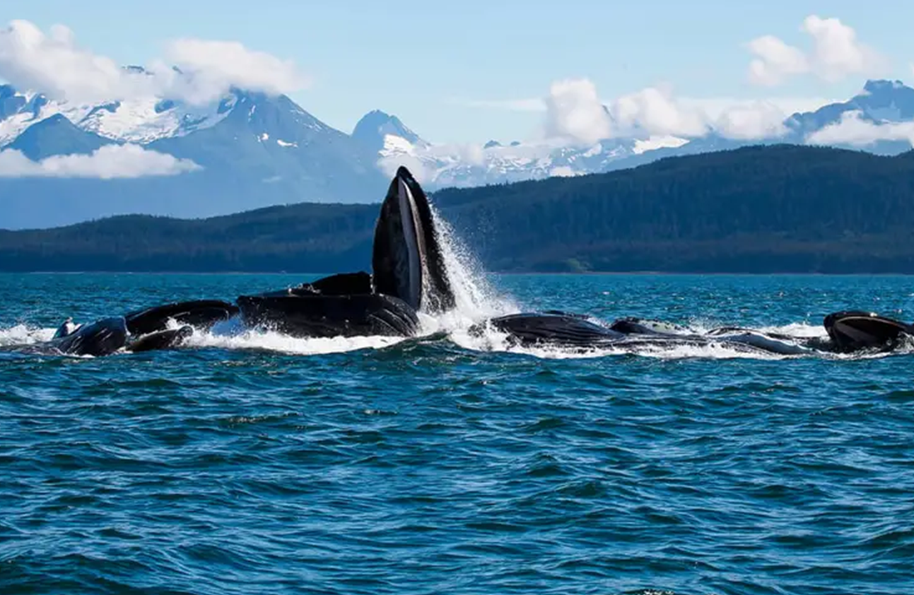 글레이셔 베이 크루즈는 단순한 풍경 감상을 넘어 살아있는 생태 체험의 장입니다. 크루즈를 통해 혹등고래, 범고래, 물개, 바다사자, 그리고 하늘을 나는 흰머리 독수리 등 다양한 야생동물을 만날 수 있습니다. 특히 주목할 만한 야생 행동은 혹등고래가 집단으로 원을 그리며 공기 방울을 뿜어 먹이를 가두는 '버블-넷 피딩(Bubble-net feeding)'입니다. 이러한 전문적인 생태 지식을 바탕으로 한 관찰은 여행의 깊이를 더해주며, 자연의 경이로움을 더욱 생생하게 느끼게 합니다.