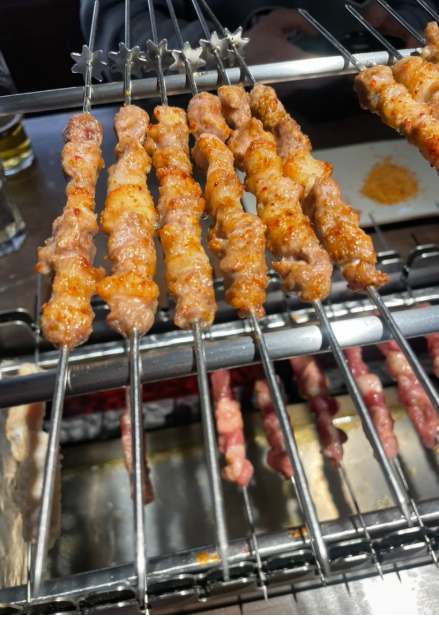 융합 요리 파기름 국수, 신장 양꼬치 파 향과 간장의 단순한 조화. 커민 향과 불맛이 어우러진 양꼬치.