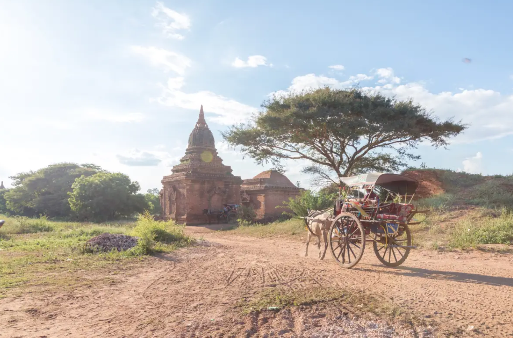 평원 속 마을:이바이크를 타고 민난투(Min-nan-thu)와 같은 작은 마을을 지나다 보면, 고대 유적을 배경으로 살아가는 주민들의 소박한 일상을 마주하게 된다.여행자에게 건네는 순박한 미소와 인사는 바간 여행의 또 다른 감동이다.