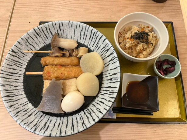 히메지 오뎅(姫路おでん):평범한 오뎅처럼 보이지만, 먹는 방식이 독특하다. 잘 익은 오뎅을 그릇에 담아 생강을 곁들인 간장(생강 간장)에 찍어 먹는다.가게마다 국물과 생강 간장의 맛이 미묘하게 달라 비교하며 먹는 재미가 있다. 히메지역 근처 이자카야에서 쉽게 맛볼 수 있다.