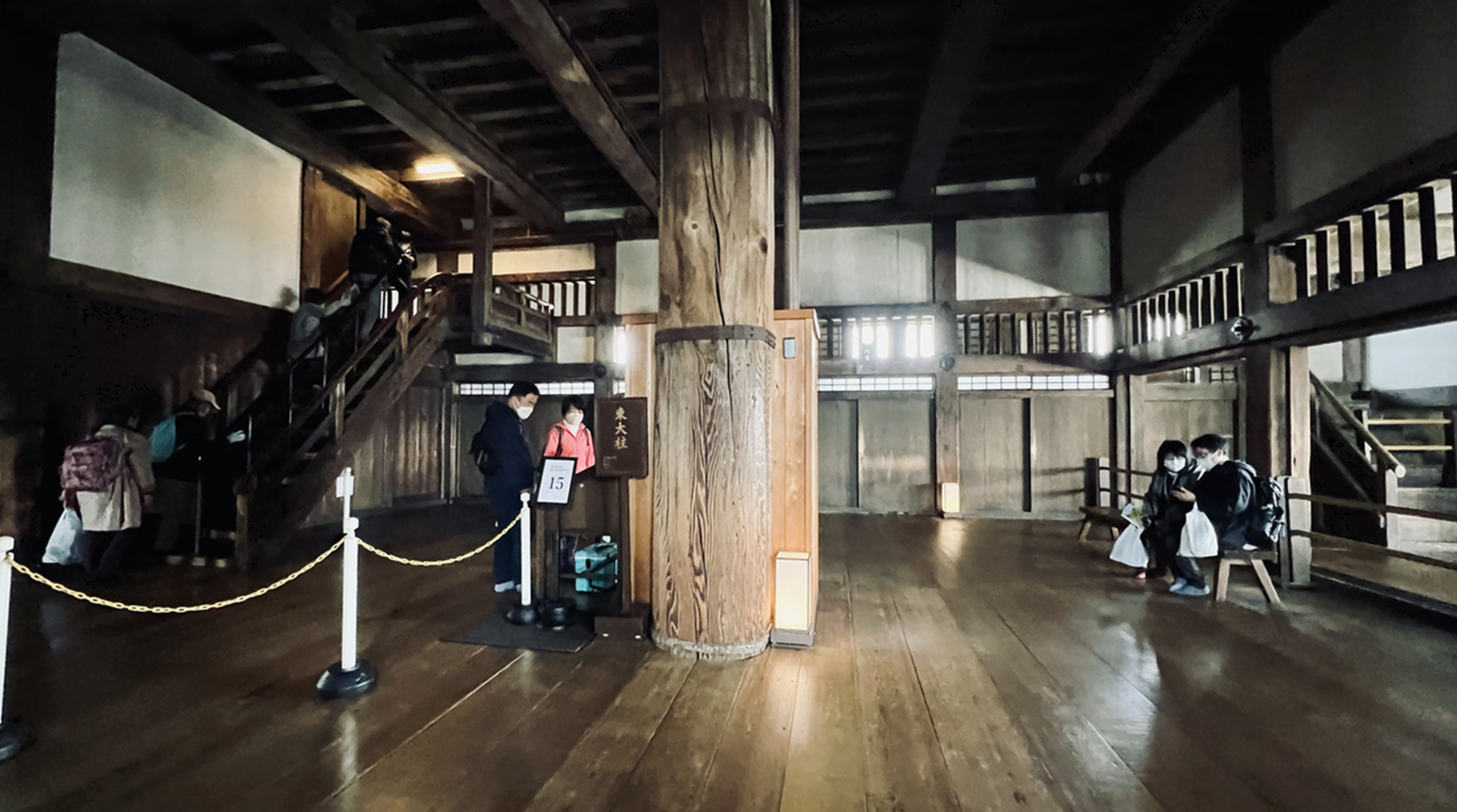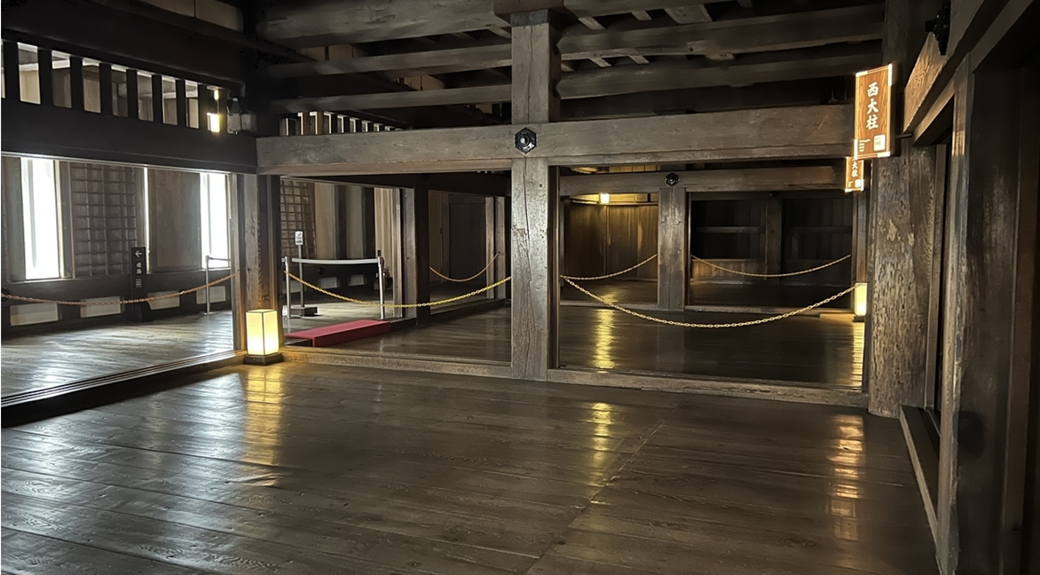 미로 같은 방어선을 뚫고 나면 마침내 히메지성의 심장부, 대천수(大天守)에 다다른다. 밖에서 보면 5층으로 보이지만, 실제로는 지하 1층, 지상 6층의 총 7층 구조로 이루어진 거대한 목조 건축물이다.
