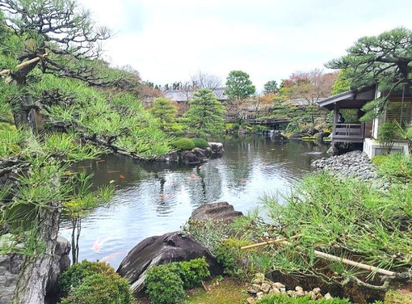 차노니와(茶の庭, 차의 정원):다실 '소주안(双樹庵)'이 있어 500엔의 저렴한 비용으로 정통 다도 체험을 할 수 있다.