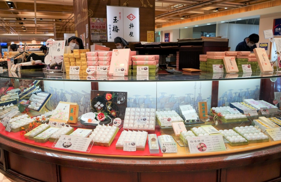 전통 과자:동백꽃 모양의 화과자 '다마츠바키(玉椿)'나 딱딱하고 바삭한 식감이 특징인 '카린토(かりんとう)'는 선물용으로 안성맞춤이다.