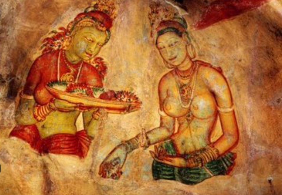 시기리야 여인상 (Sigiriya Frescoes):바위 중턱의 나선형 계단을 따라 올라가면 움푹 파인 암벽 속에서 세계적으로 유명한 프레스코 벽화를 만나게 됩니다. '구름 속의 처녀들'이라 불리는 이 벽화는 풍만한 가슴과 허리를 드러낸 압사라(Apsara, 천상의 무희)들을 묘사하고 있습니다. 수많은 세월의 풍파 속에서도 선명한 색채와 섬세한 묘사가 그대로 남아있어 보는 이의 감탄을 자아냅니다. 한때는 500여 점이 넘었다고 전해지지만, 현재는 18점만이 남아있어 더욱 귀중한 가치를 지닙니다.